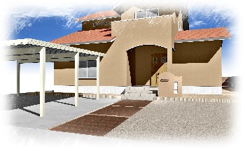 正面は、積雪対応折板カーポートマットスタンプ化粧ブロック、そして可愛らしいモニュメントを配置。