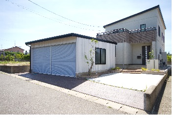 車庫はリクシル ウィンスリーポートⅡをリシン吹付で囲いました。