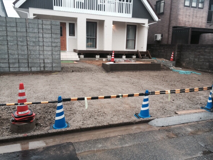 写真の左側の高い塀の後ろに駐輪スペースができます。