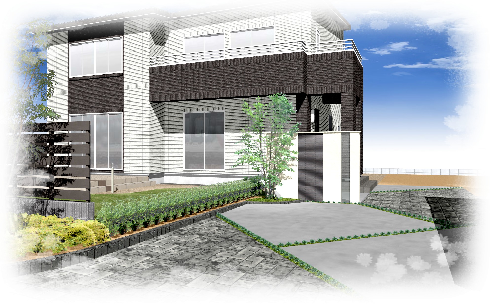 福井市 木調フェンス 折板カーポート 物置 モニュメント デザインコンクリート 福井