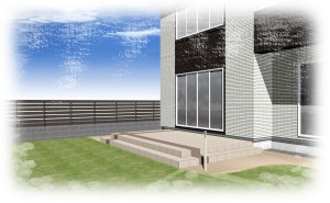 大きな敷地のM様邸、境界部分には木調フェンス目隠し