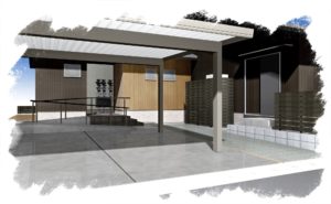 サンルーム デザインコンクリート フェンス タイル デッキ