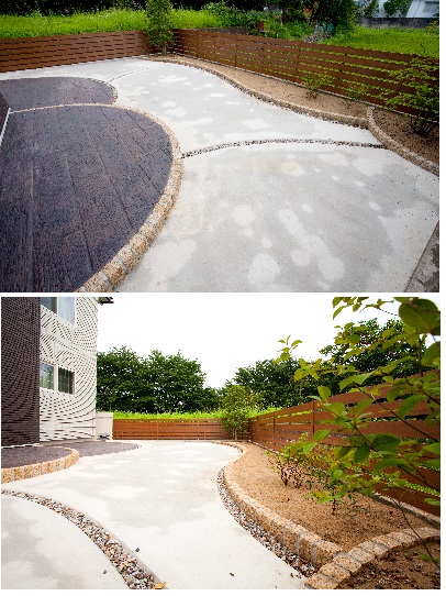 福井市 金沢市 外構 マットスタンプ デザインコンクリート ピンコロ花壇 おしゃれな