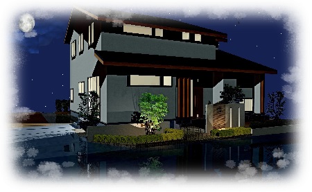 夜になると、表札とボーダータイル部分が優しい光で照らされますヽ(^o^)丿