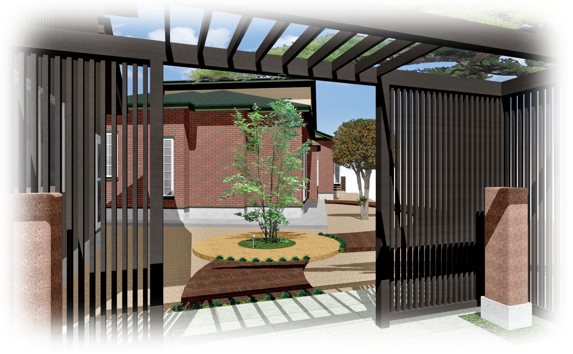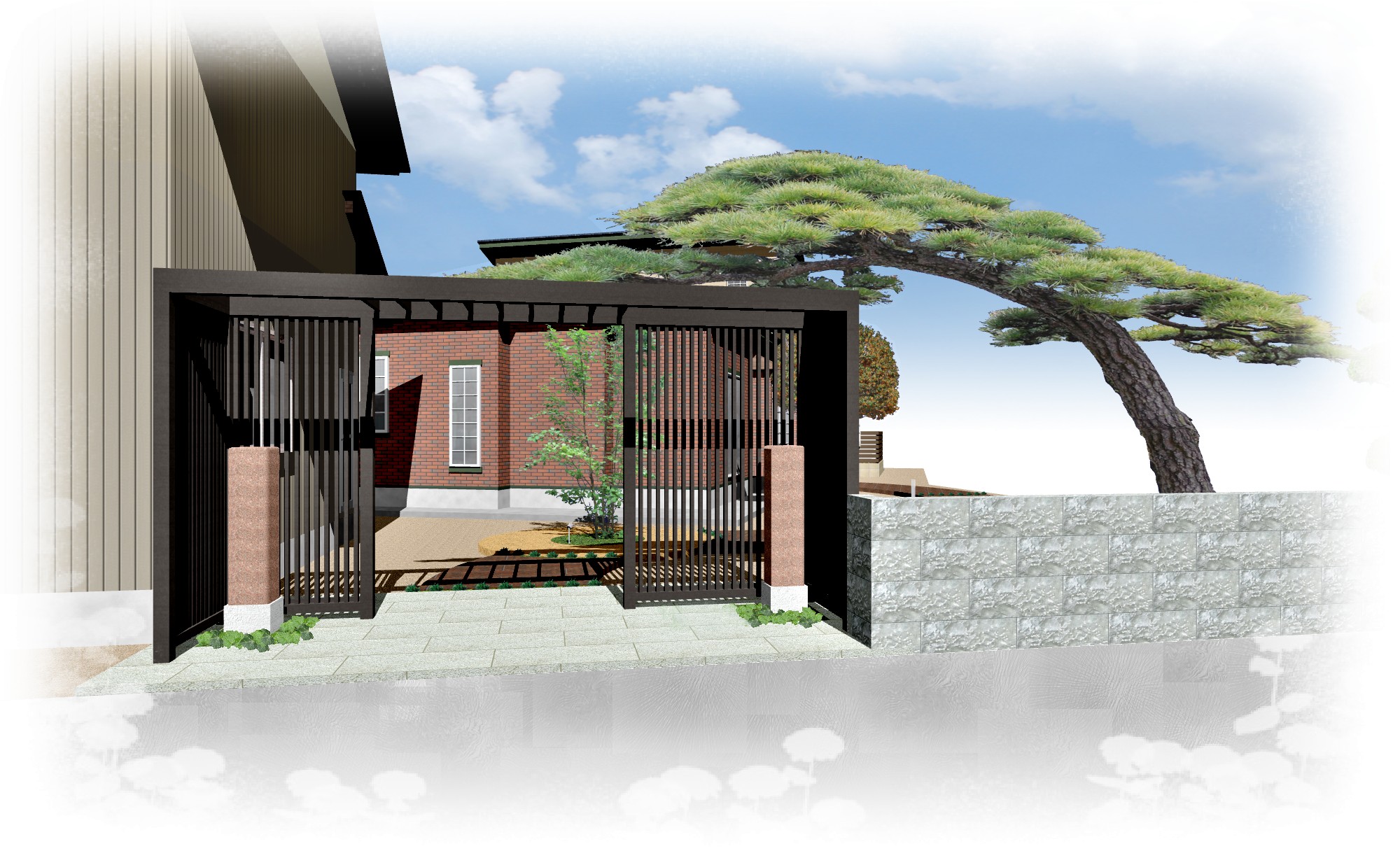 門被りの松と右側の石塀はそのままに、新しくプラスGをデザインしました。