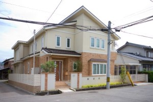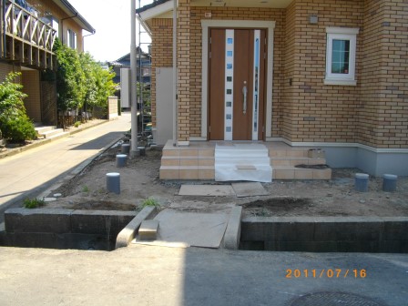 2014/04/08福井県 外構工事 塗り壁 ガラスブロック ガラス表札 レンガ こんにちは、リバーフォレストまきです。 先週に引き続きH様のご紹介です。 イメージパースはこちら ↑ ↑ です。 施工前は、玄関まえもオープンで境界との境がない感じです。 そんな正面に、 塗り壁・白色の木調フェンスで敷地を囲いました。 塗り壁には外壁に合わせたレンガの笠木を付け、 お家の雰囲気に合わせた外構エクステリアが完成しました。 次週はカーポートやお庭部分をご紹介します!!