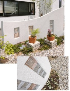 福井 おしゃれな外構 モニュメント 塗り壁 ガラスブロック