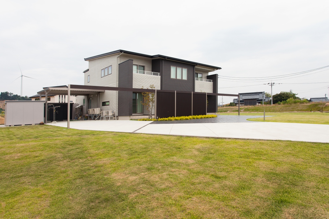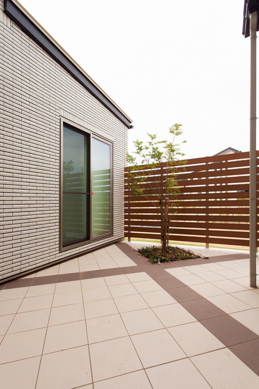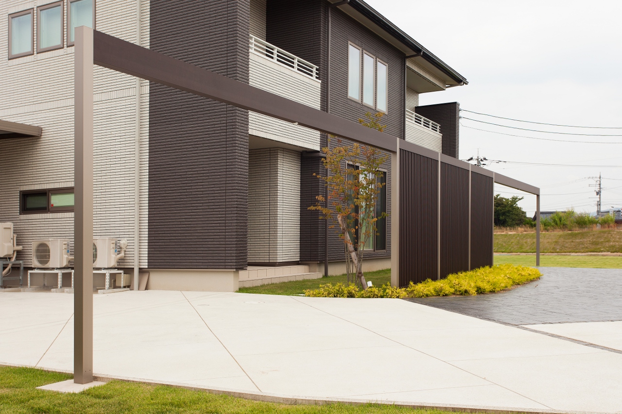 外壁の白と黒に合わせ、目隠しも兼ねて施工した