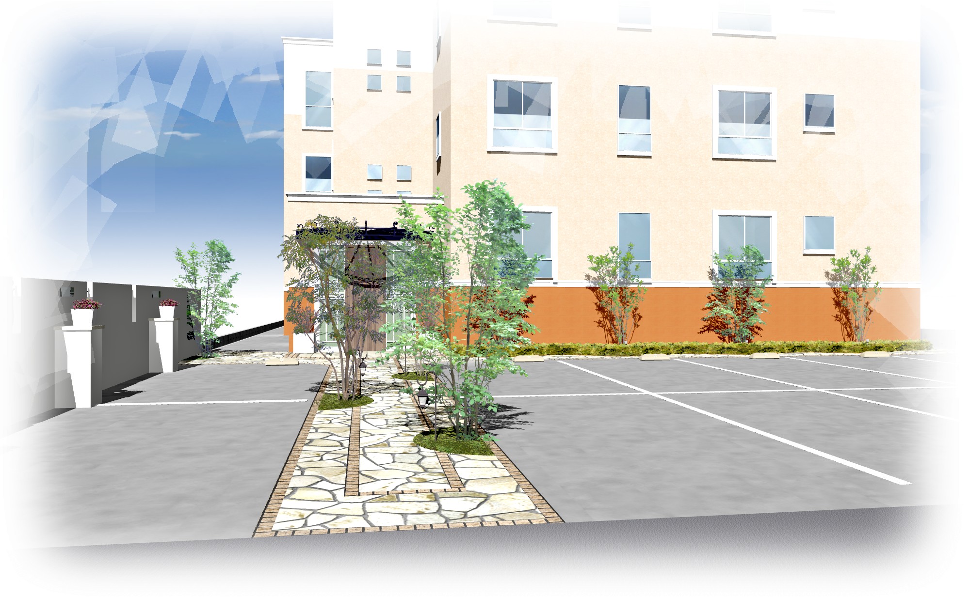 マンション入りにも沢山の植栽を植えて、癒したっぷりです。