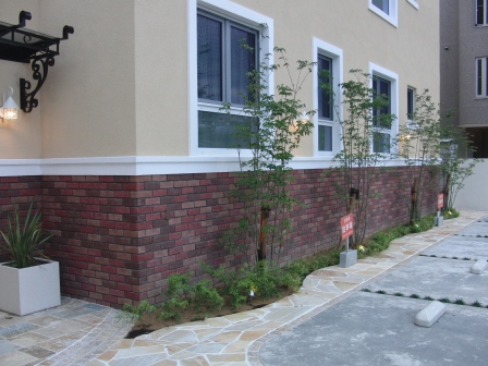 花壇には植栽を植えて、緑の多い外構エクステリアに仕上がりました!!