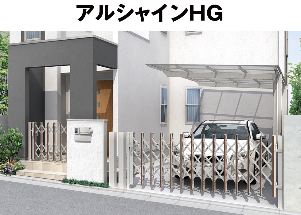 アルシャインHGノンレール・ノンキャスター伸縮門扉となっています。