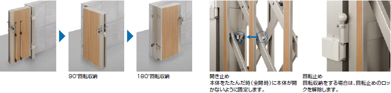 本体を回転収納して、開口部を広く確保することができます。