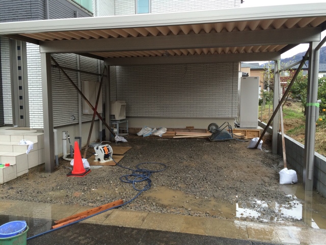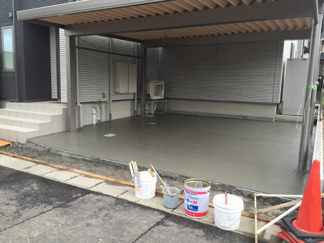 福井 土間コンクリート 折板カーポート デザインコンクリート リクシル マット 福井市