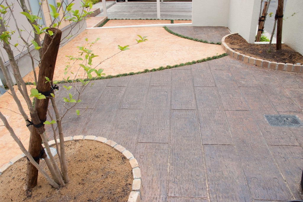 福井 坂井市 カーポート デザイナーズパーツ モニュメント ガラス表札 デザインコンクリート