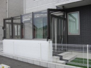 2013/03/15福井 坂井市 ガーデンルーム ココマ cocoma サンルーム こんにちは、リバーフォレストまきです。 本日は、ガーデンルーム、サンルーム ココマをご紹介します。 ガーデンルームタイプ腰壁のココマです。 ココマの下は300角のタイルテラスで リビング感覚のくつろぎスペースをつくりました。 坪庭にはお手入れのいらない人工芝を敷きました。 角にはピンコロの花壇を作り、 春には沢山の花を咲かせる予定です。 リバーフォレストのHPには沢山の施工事例が載っていますので ご覧ください。