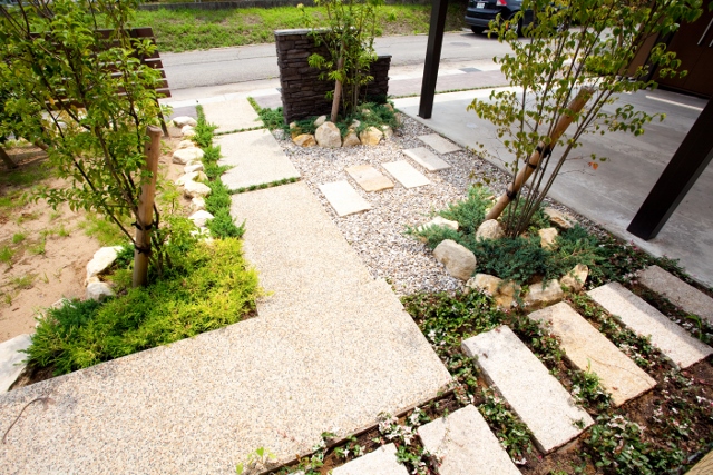 福井 坂井市 施工事例 リバーフォレスト 庭 アプローチ