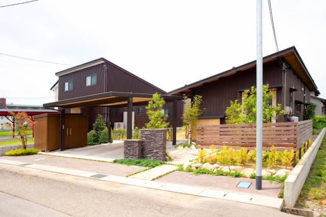 木の外観にピッタリの素敵なお庭に仕上がりました。