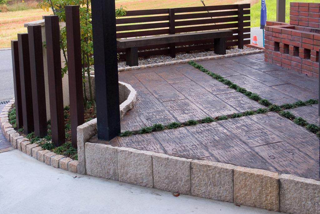 土間部分を デザインコンクリート ( スタンプコンクリート ) に作り直しました。