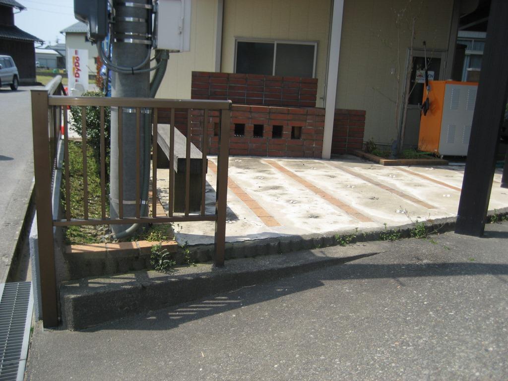 K様宅は土間のスロープにコンクリート擁壁、 アルミのフェンス と