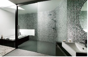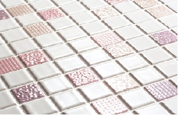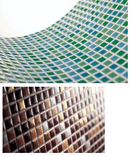 10mm角の小さな施釉モザイクです。曲面にも使えるので、さまざまなアイデアも実現できます。