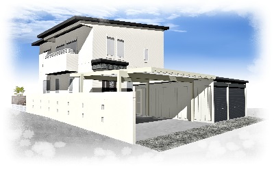 S様邸は、積雪対応折板カーポート、ヨドコウの倉庫ラビージュ・・・