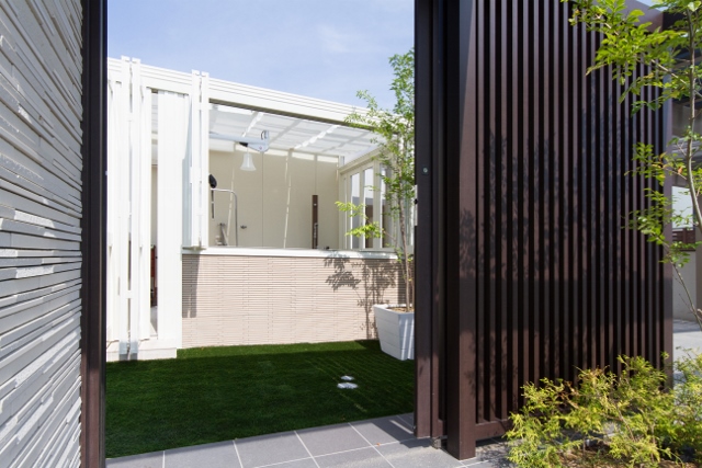 福井 外構工事 人工芝 サンルーム +G プラスG ジーマ タイルテラス 福井市