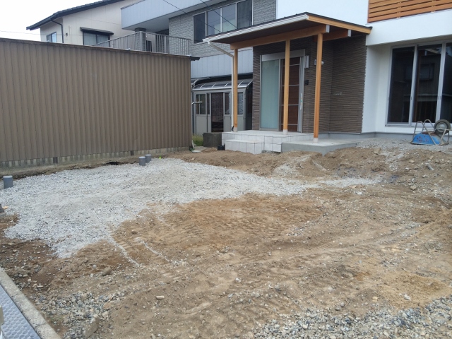 2015/09/15福井 外構工事 洗い出し アルミ柱 ピンコロ 植栽 エクステリア 福井市 こんにちは、リバーフォレストまきです。 本日からは福井市のK様邸のご紹介です。 玄関前には洗い出しの階段、洗い出しのふちはピンコロです。 リビング前にはシンボルツリーで目隠しし、 アクセントにアルミ柱のモニュメントを施工します。 洗い出しの階段だけでなく、スロープもつくります。 整地済みのK様邸 ↓ ↓ 完成お楽しみに~ リバーフォレストのHPには沢山の施工事例がUP されていますので、ぜひご覧ください。