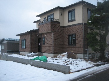 外壁と色を合わせて、ブラウンに。模様は枕木です。