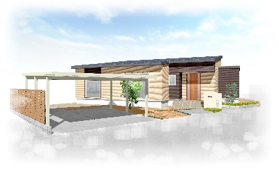 福井 外構 マットスタンプ 折板カーポート 木調フェンス 植栽 トータルエクステリア