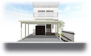 玄関横の窓の目隠しのために、カーポート後方にBウッドフェンスを設置。