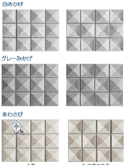 表面はピラミッド形の凸形状、裏面は凹形状ですので、裏表の組み合わせが可能です。