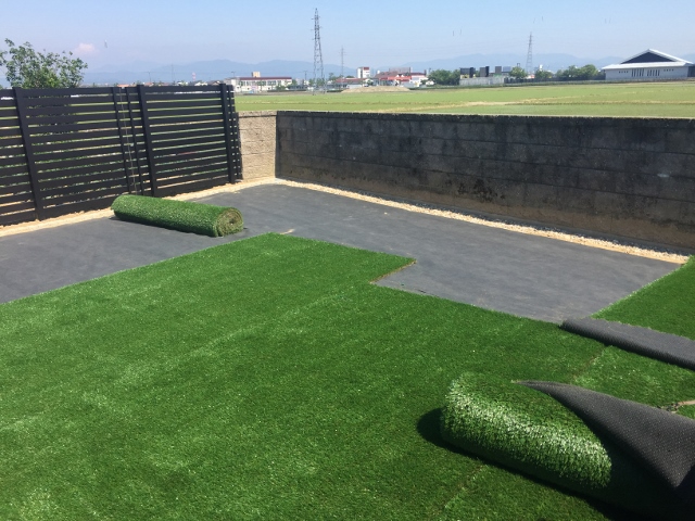 福井 庭 人工芝 目隠しフェンス 庭リフォーム ピンコロ 福井市