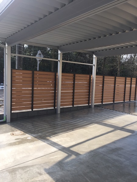 福井 新築外構 Bウッドフェンス モニュメント テラス カーポート