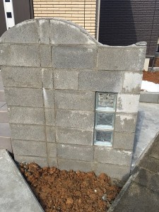 モニュメント は、まだ施工中で仕上げは塗り壁仕上げの予定です。