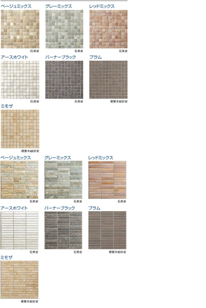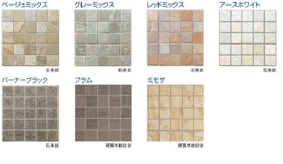 タイル状の自然石で表情豊かな色合いが魅力のスクエアストーンモザイク。