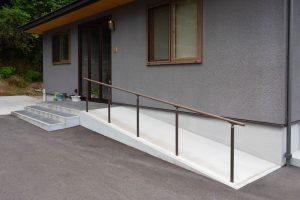 福井 水はけ 暗渠パイプ 高低差のある庭 カーポート 外構 手摺 エクステリア