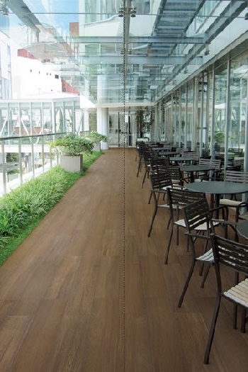 本日は、商業施設の外テラスなどにも使われている、木目調外床タイルです(^^)