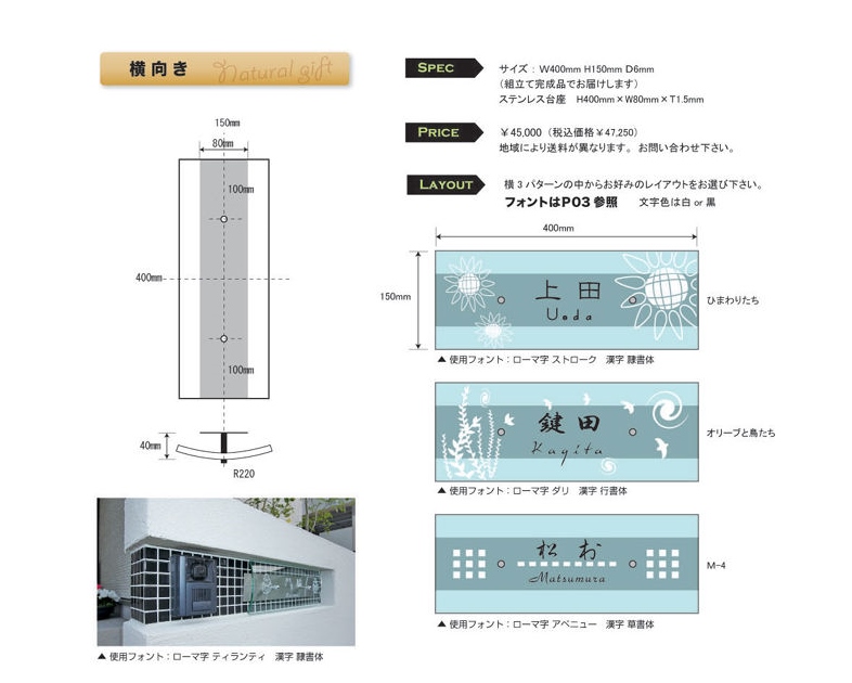 福井 福井市 おしゃれな ガラス表札 Hi-ZERO ナチュラルギフト