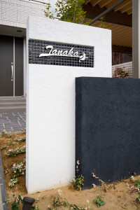 T様邸はモノトーンのモニュメントエクスタイル表札を施工されました。