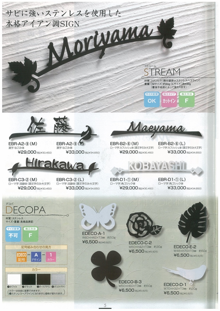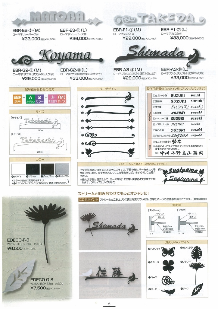 エクスタイル表札 STREAMストリーム)は、サイズ、カラー、バーデザイン、書体を