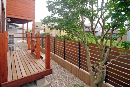 後ろ側にはウッドデッキと目隠しフェンスを施工されました。