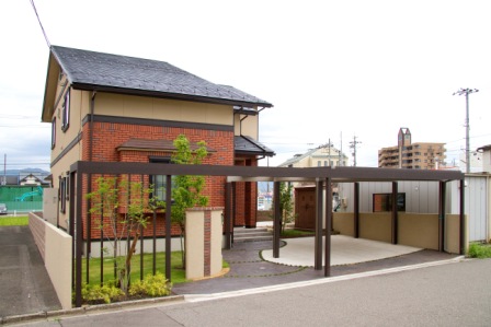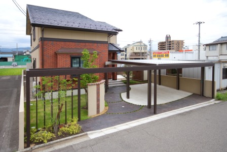 福井 福井市 カーポート デザインコンクリート ( スタンプコンクリート ) モニュメント プラスG