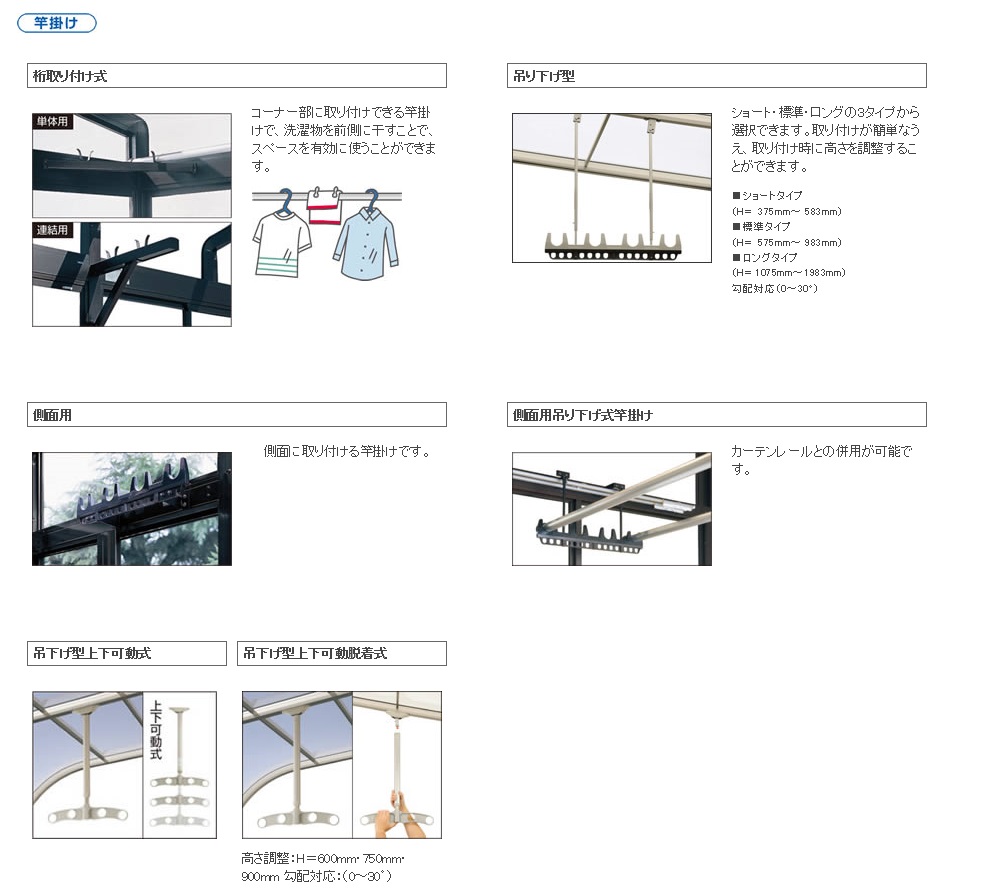 毎日の生活に欠かせないお洗濯。広さに応じて豊富な竿掛けから選べるオプションもあります。
