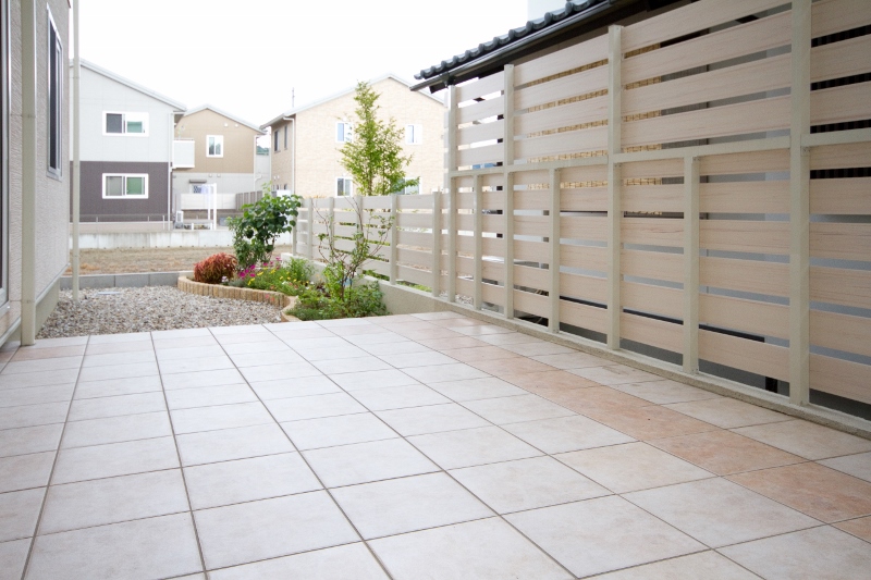 福井 福井市 タイルテラス 目隠しフェンス 植栽