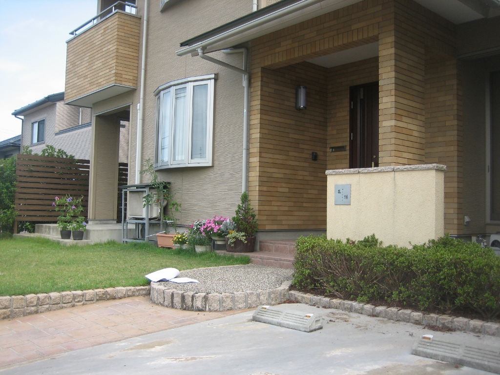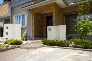 福井 福井市 外構リフォーム おしゃれなモニュメント 表札 モザイクタイル 塗り壁 ガラスブロック Bウォール