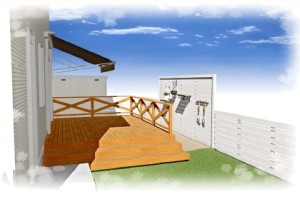 お庭には、B-ウッドフェンス(オフホワイト)で目隠しを