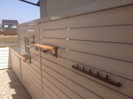 板に付いている、ツールハンガーはディーズガーデンの商品です。