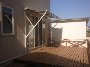 そして、デッキにはオーニングを付けておしゃれに日除けをしています。