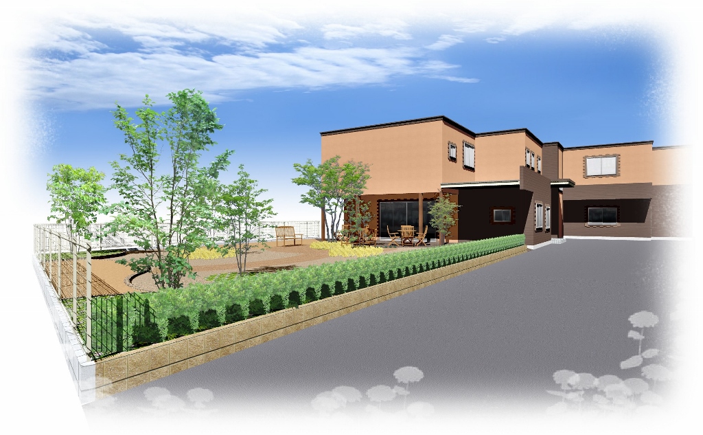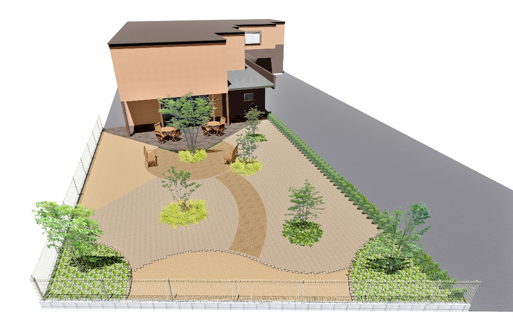 福井 福井市 庭工事 外構工事 デザインコンクリート ( スタンプコンクリート ) 植栽