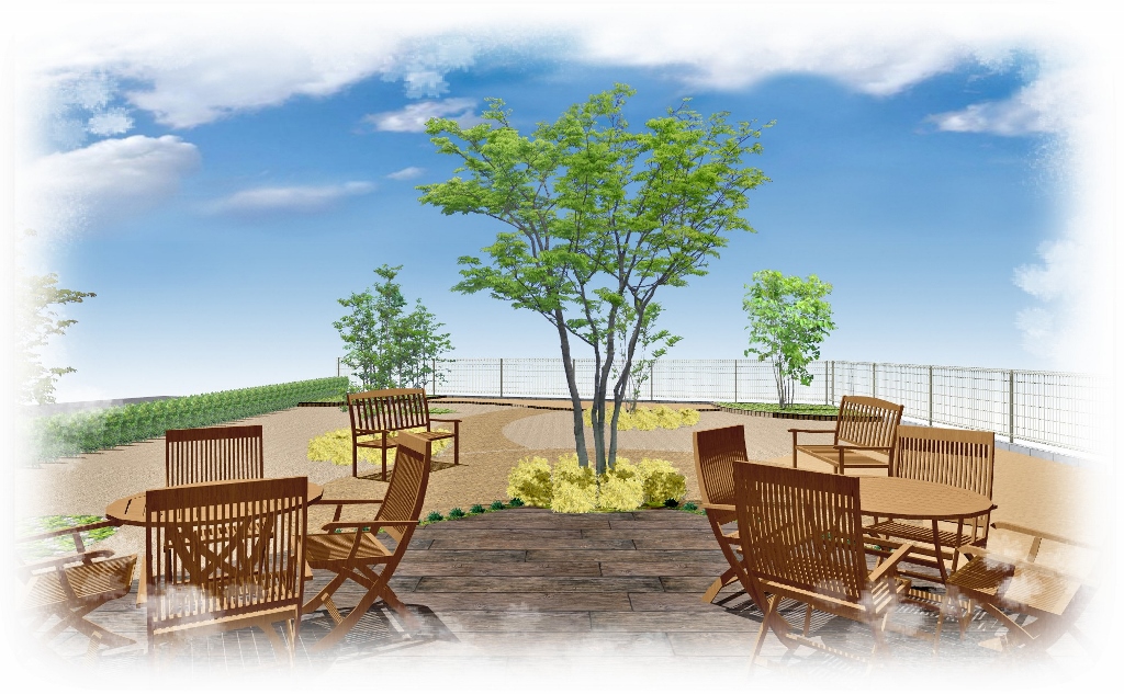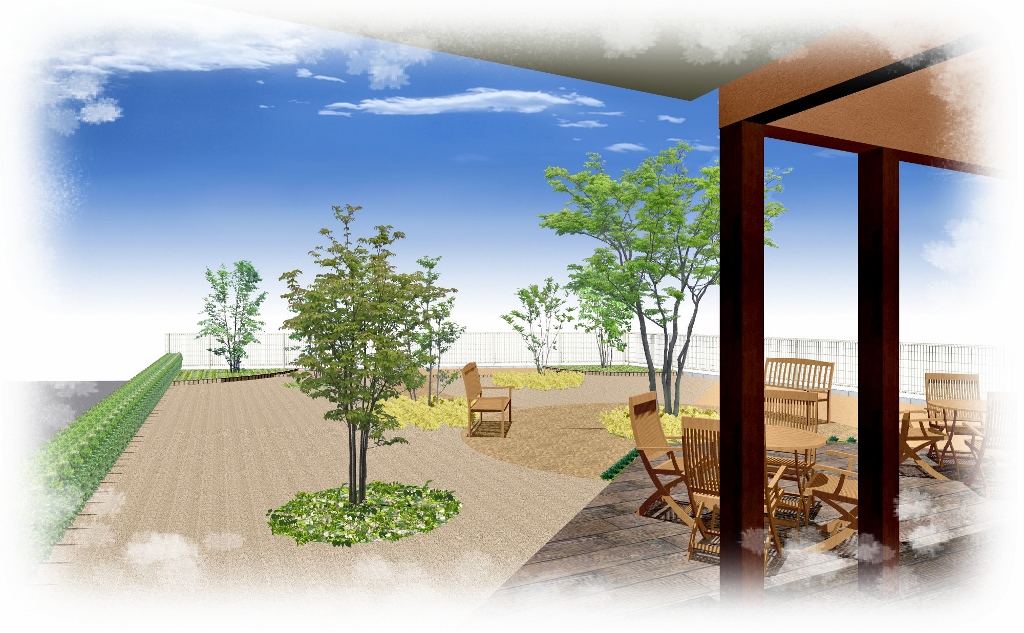 窓の一番近いところが、デザインコンクリート(スタンプコンクリート)の